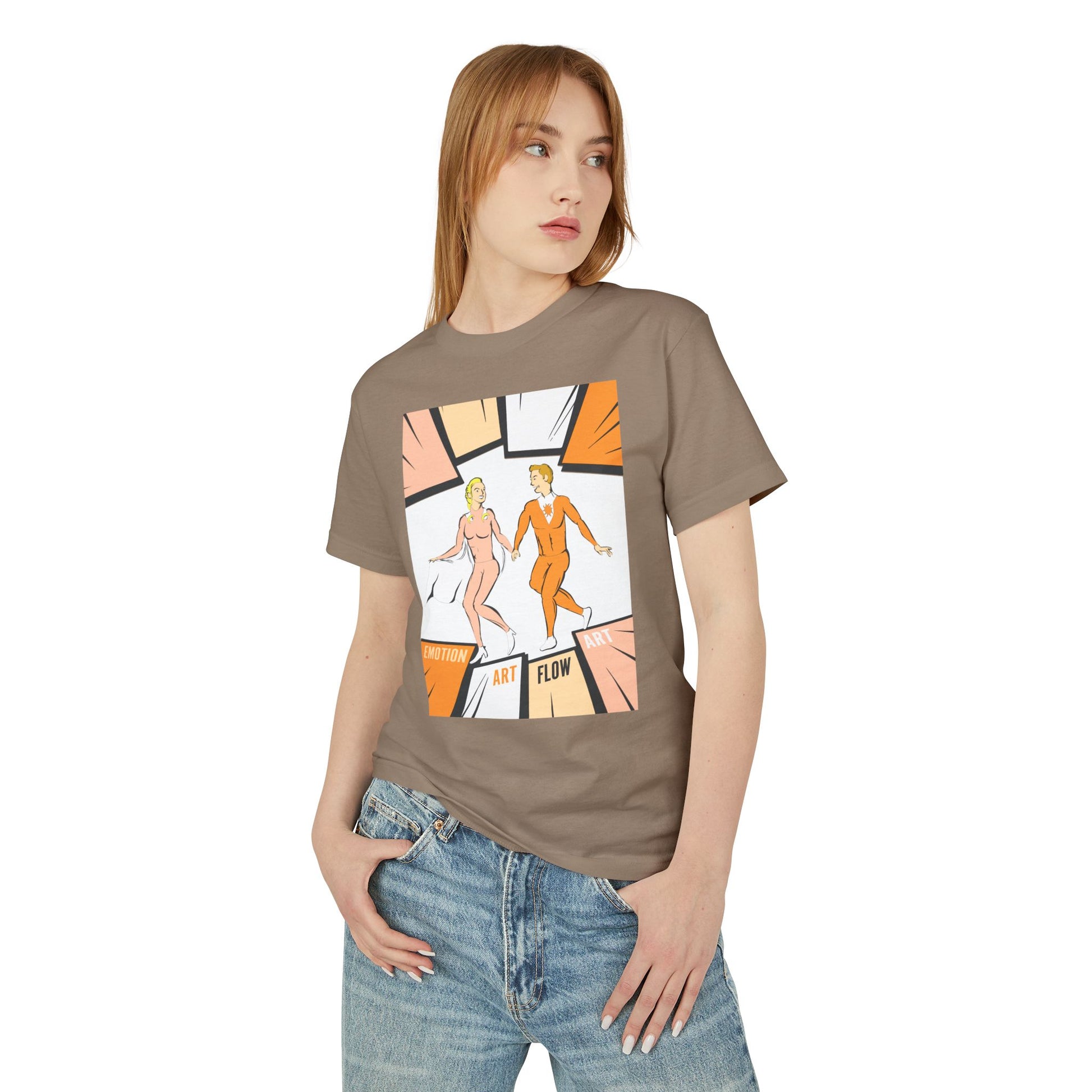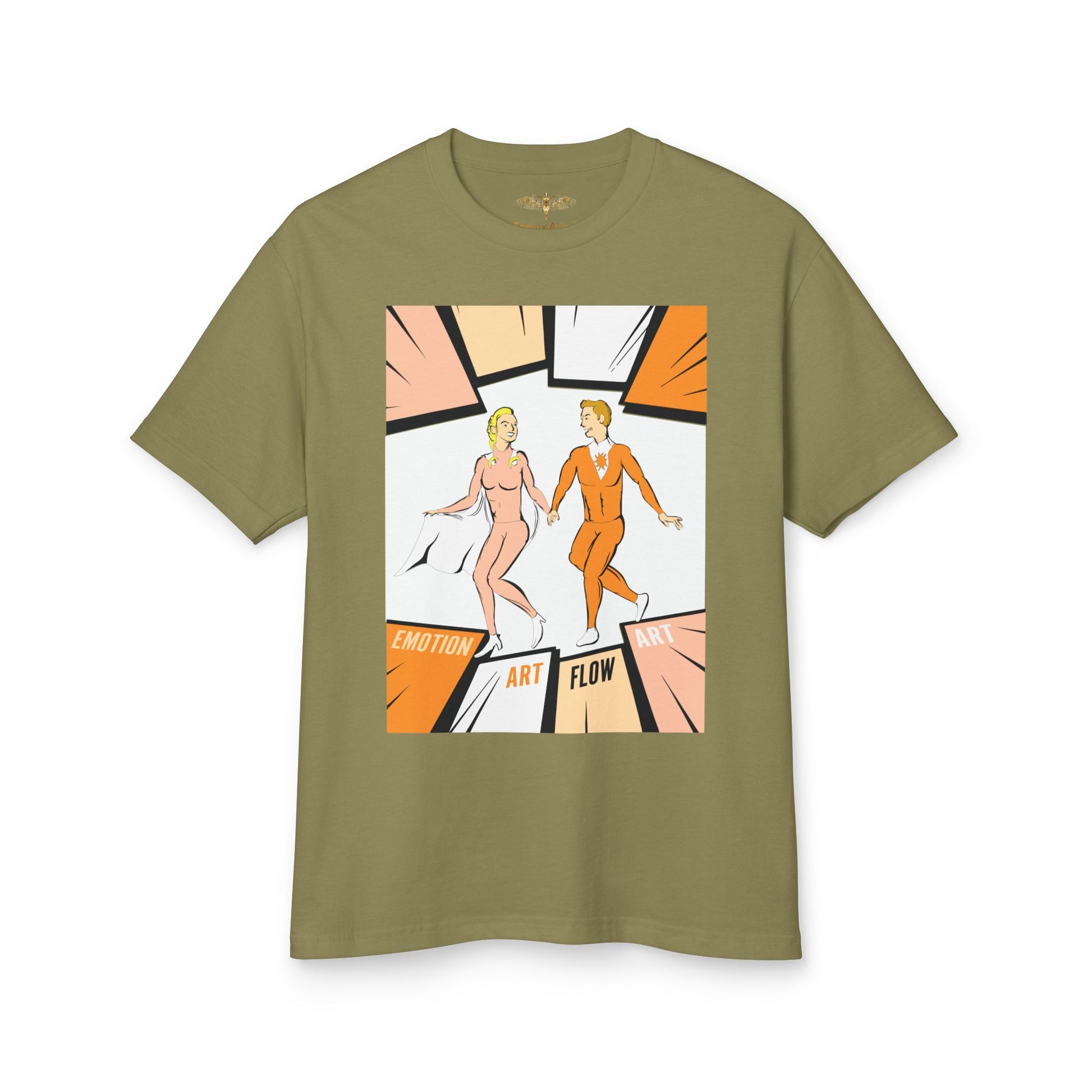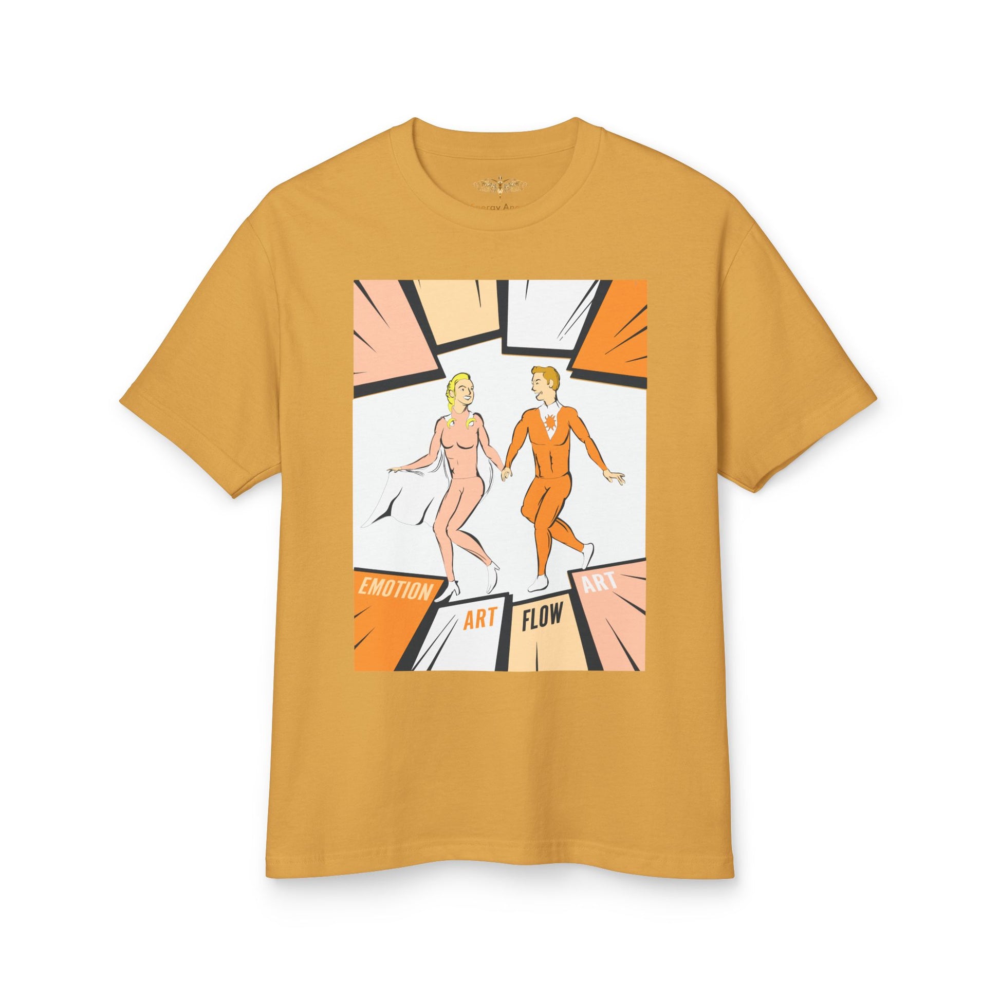 Art Flow Retro Sacral Chakra Super Hero Dance Graphic Tee — 'Emotion • Art • Flow' Vintage Pop Design
