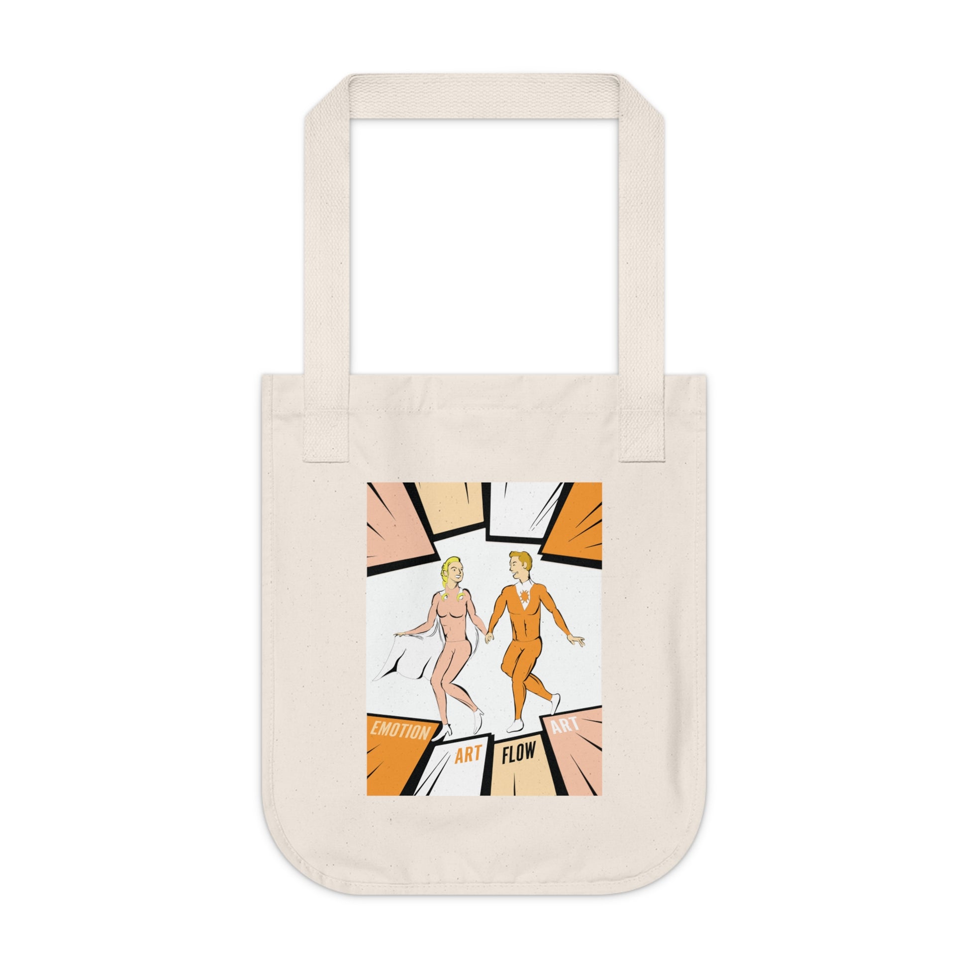 Canvas Tote Bag Sacral Chakra Super Hero — Retro Comic ‘Art Flow’ Dancing Duo Eco Tote