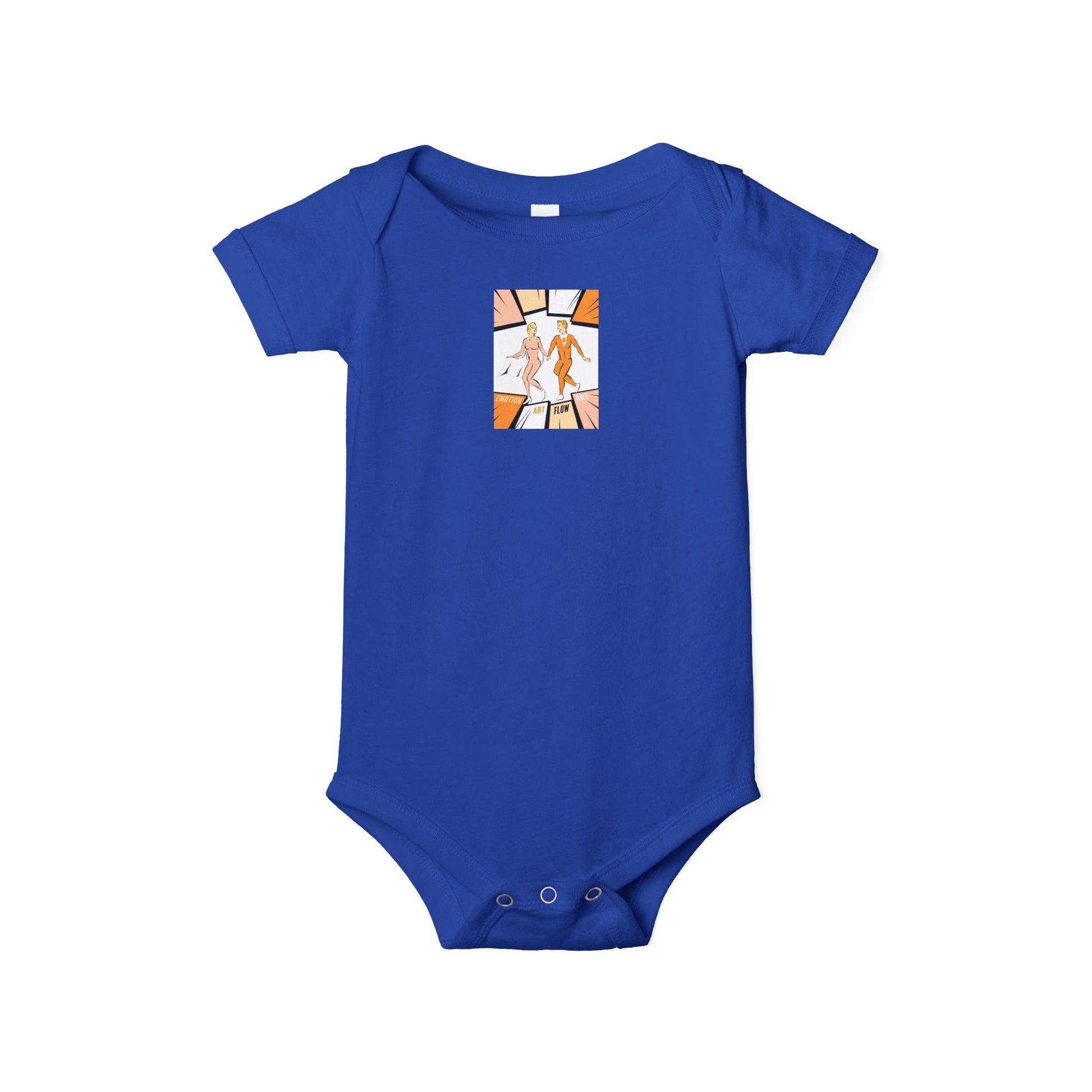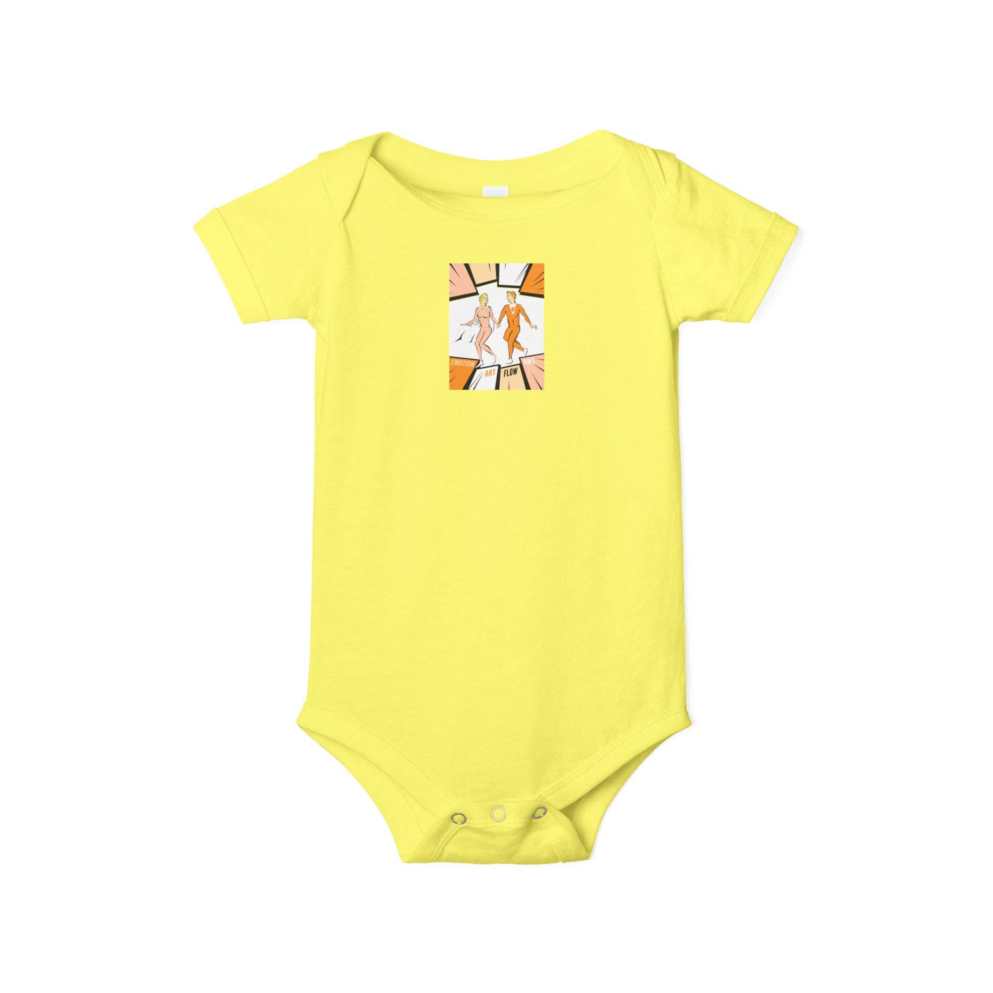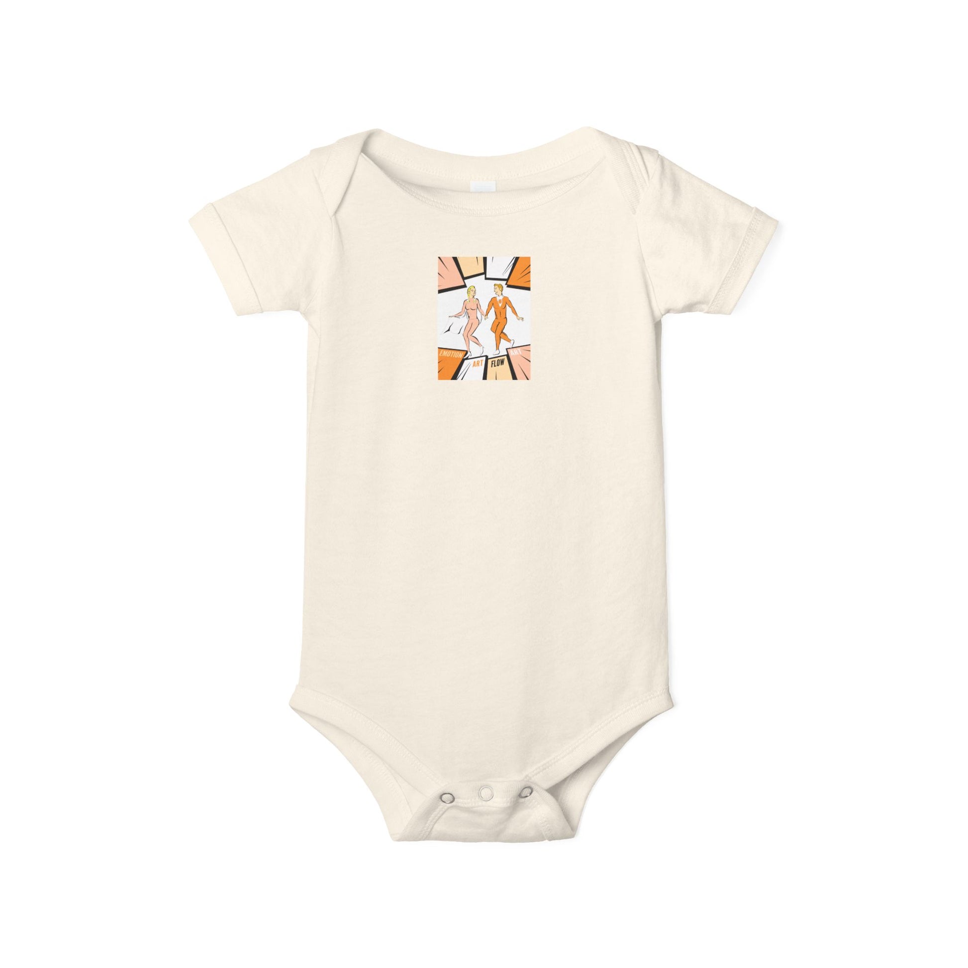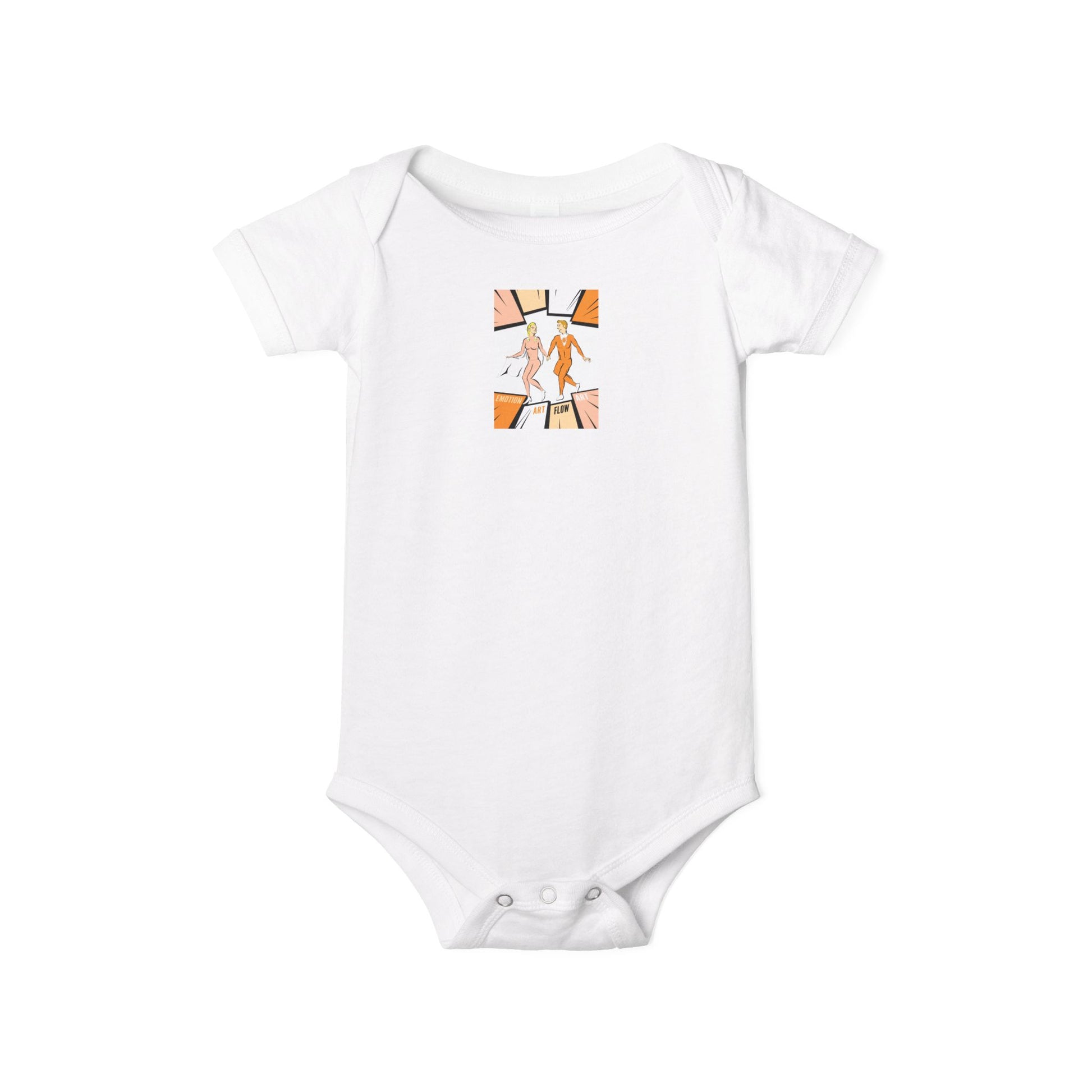 Infant One-Piece Bodysuit with Cute Sacral Chakra Super Hero Cartoon Fox Panel — Baby Gift & Everyday Wear