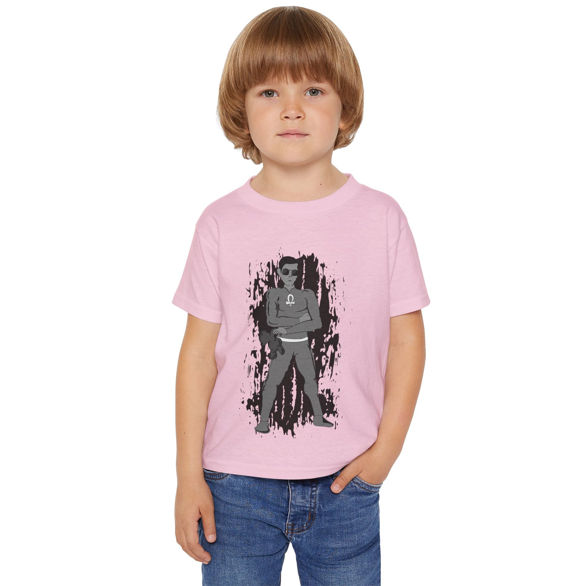 This toddler tee brings a bold, playful attitude to everyday wear. Soft, medium-weight cotton with reliable construction stands up to playtime while the monochrome graphic adds a touch of cool — a little rebel with crossed arms, sunglasses, and a grunge paint-splash backdrop. Short sentences and simple lines make it easy to layer under jackets or wear on its own. It feels comfortable on fidgety shoulders, holds its shape wash after wash, and reads like a tiny style statement for kids who want to be noticed without shouting. Great for casual days at the park, family photos, or pairing with denim for a relaxed weekend look.