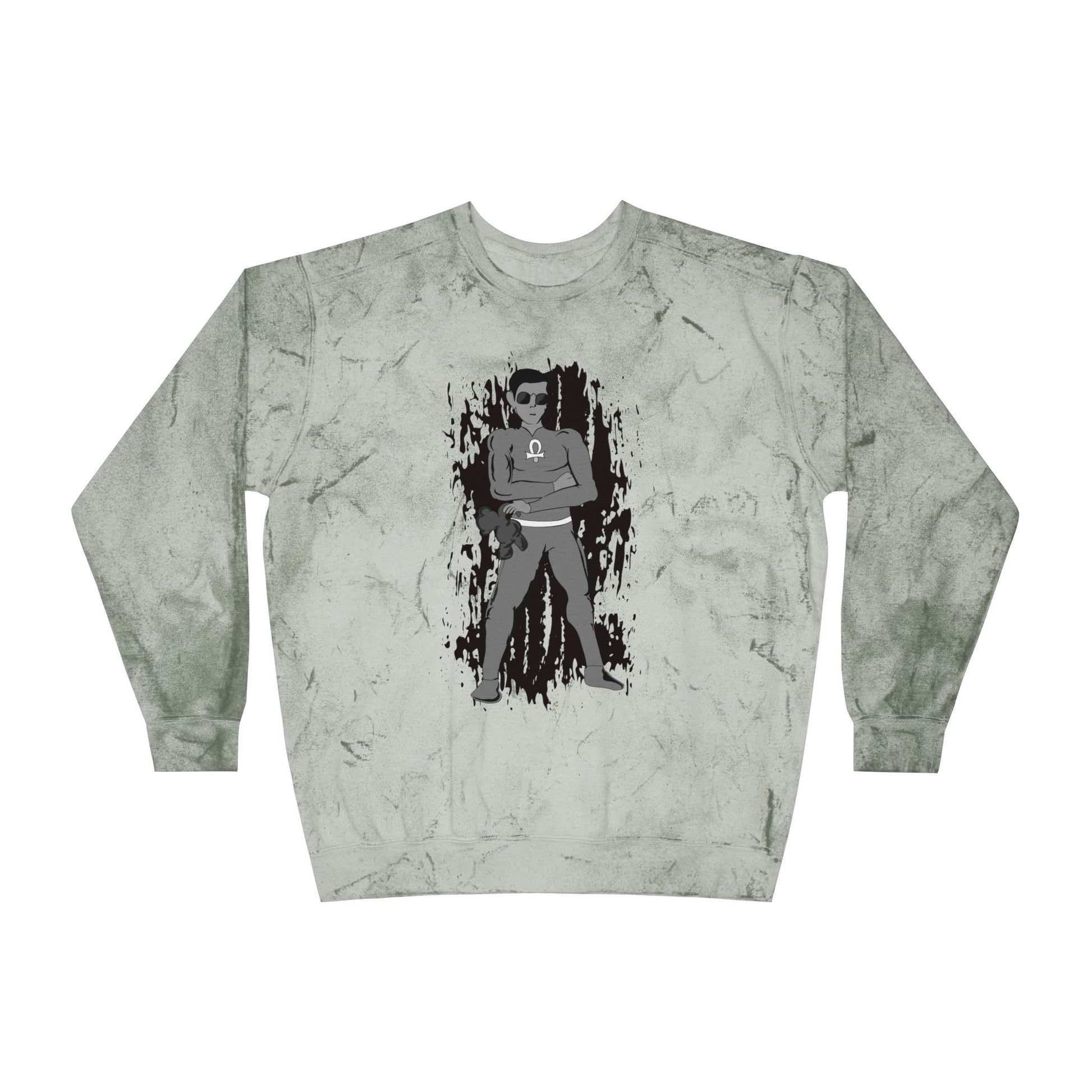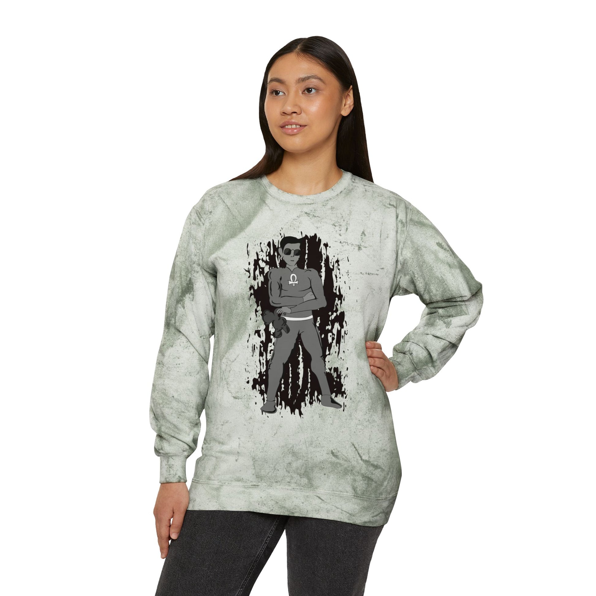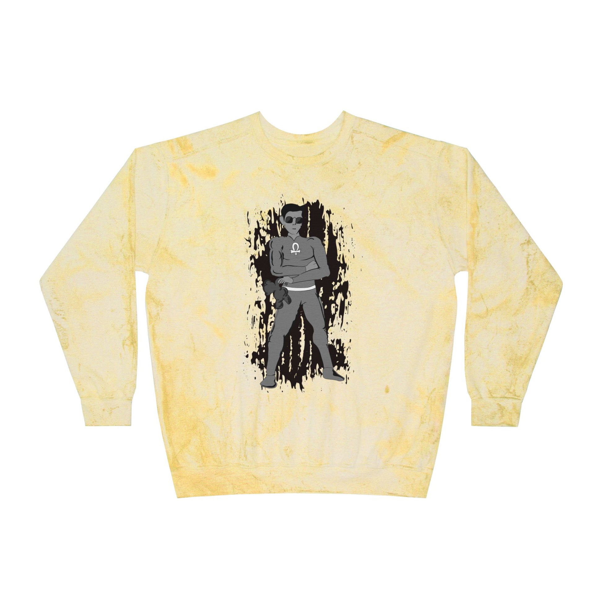 Yellow Tie-Dye Crewneck Sweatshirt with Root Chakra Super Hero Vintage Rebel Graphic